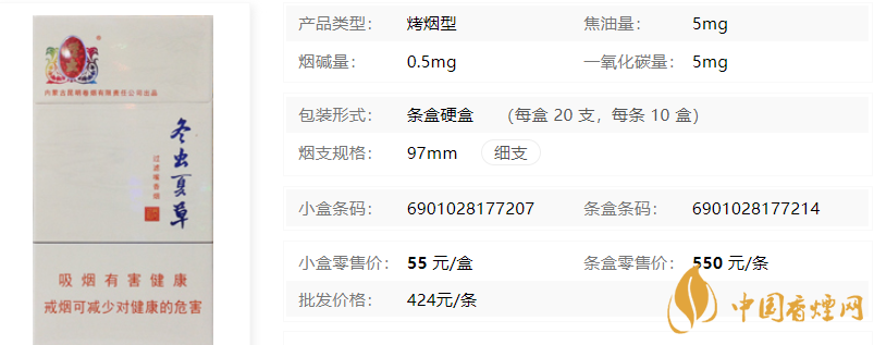 冬蟲夏草(和潤)是一款全新的細(xì)支香煙,它傳承高雅與尊貴的品牌風(fēng)格,以云貴及進(jìn)口的煙葉為原料,結(jié)合國際領(lǐng)先的調(diào)香技術(shù),采用高效醋纖濾棒、高透成型紙,精心的制作而成??诟兄琳渲链?,讓人一品傾心。在冬蟲夏草細(xì)支價(jià)格表圖中,它定位高端,專門針對有追求、有品味的消費(fèi)群體,據(jù)了解它的市價(jià)為60元/包。