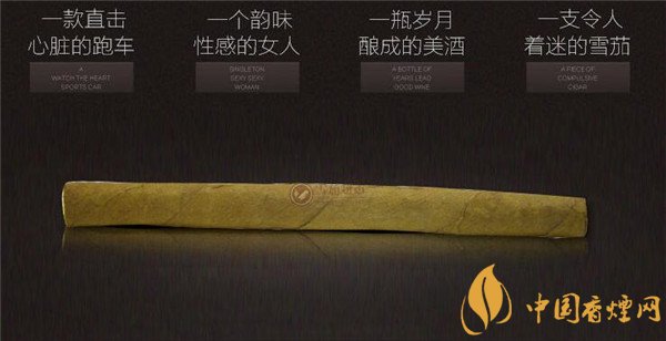 這款雪茄煙外觀簡約自然,它采用了木盒裝置,原木色與咖色相得益彰,彰顯其清新自然之感。盒面左下角有一株綠色的煙葉封標,或許是商家在向茄客們傳遞著信息,寓意此款雪茄采用純天然煙葉精制而成。深棕色的茄體修長而又顯堅挺,突出的葉脈紋路清晰可見,茄體底部煙質呈現(xiàn)統(tǒng)一深咖啡色,沒有一點點雜色系,品質是絕無二話之說的。