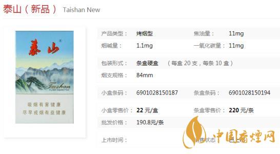 泰山新品煙多少錢一盒價格表 泰山新品煙價格及參數(shù)介紹