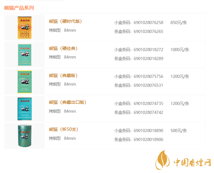 熊貓香煙圖片價格一覽 熊貓香煙多少一盒