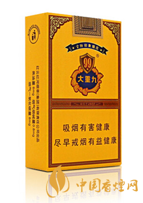 細(xì)支大九采用硬盒包裝,外觀印刷設(shè)計沒有什么改變,無雜質(zhì)的金礦黃襯托盾牌花邊“大重九”,背面是麥穗包裹99,簡單大氣的包裝卻不失豪華端莊,那么這款大重九多少錢一包,它的價格為100元/包。