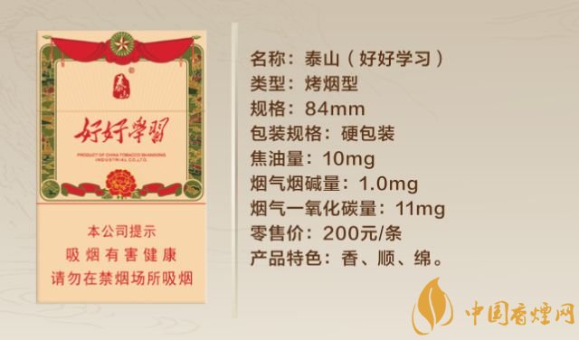 泰山的好好學(xué)習(xí)和白沙的天天向上。激勵(lì)著新一代的年輕人 :白沙出了種煙叫天天向上,泰山出了種煙叫好好學(xué)習(xí),泰山牌好好學(xué)習(xí)的香煙,我們是祖國(guó)的兒女,我們一定好好學(xué)習(xí),報(bào)效祖國(guó)……泰山煙新品多少錢(qián)?泰山好好學(xué)習(xí)20元包。