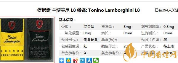 蘭博基尼香煙參數(shù)信息