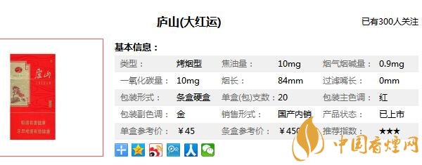 以上內(nèi)容是由香煙網(wǎng)小編為大家收集以及整理的關(guān)于,廬山大紅運(yùn)煙多少錢一包以及廬山大紅運(yùn)煙價(jià)格表 相關(guān)信息,想要了解更多信息詳情請點(diǎn)擊:長白山煙最貴多少錢一條。