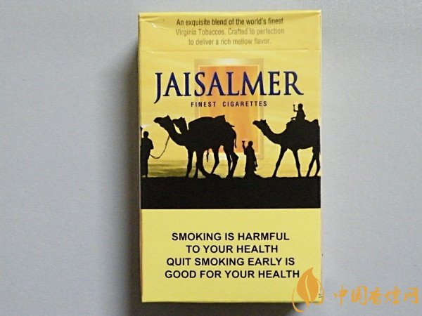 賈沙梅爾香煙是印度的著名卷煙品牌,它有著類似美國駱駝的駱駝圖標,它是印度當(dāng)?shù)貥O有特色的一款香煙,深受印度煙民的喜愛和推崇,據(jù)了解人們對它的喜愛,如同國人對黃鶴樓香煙一樣。這款印度jaisalmer香煙多少錢一包?香煙網(wǎng)小編將對中免JAISALMER賈沙梅爾香煙價格進行介紹。