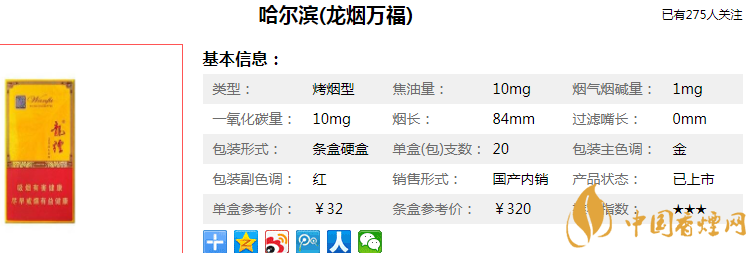 這就是"龍煙家族"幾個(gè)快樂(lè)的小兄弟,滿足龍江煙草消費(fèi)者的各種需求。以上就是香煙網(wǎng)小編為大家整理介紹的關(guān)于哈爾濱龍煙多少錢(qián)一包/條以及哈爾濱龍煙(系列)價(jià)格表相關(guān)信息,更多了解點(diǎn)擊:東北特產(chǎn)煙有什么 東北人喜歡抽什么煙(不止東三省代表煙)