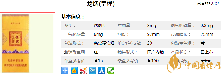 作為一款零售價(jià)格150元/條的細(xì)支卷煙,龍煙(呈祥細(xì)支)所用配方與哈爾濱龍煙(系列)價(jià)格表零售價(jià)550元/條的“龍煙(祥和)”以及零售價(jià)320元/條的龍煙(萬(wàn)福)相當(dāng)。
