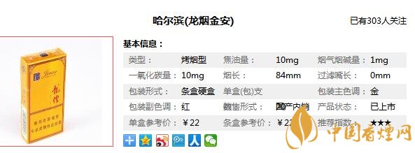 | 類型 :烤煙型 | 焦油量 :10mg | 煙氣煙堿量 :1mg | 一氧化碳量 :10mg |