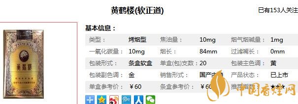 類型 :烤煙型 焦油量 :10mg 煙氣煙堿量 :1mg 一氧化碳量 :10mg