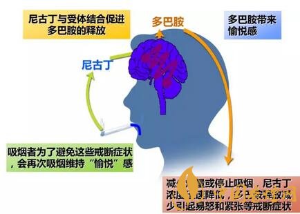 尼古丁在體內(nèi)代謝速度非常快,不抽煙的時(shí)候,尼古丁濃度的迅速降低造成多巴胺釋放量減少,因而產(chǎn)生煩躁、焦慮等戒斷癥狀,身體就會(huì)渴求再次吸煙以獲得尼古丁來避免戒斷癥狀,這就是尼古丁成癮的本質(zhì)。