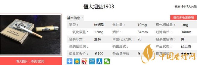 1948年,為慶祝中國(guó)恒大企業(yè)公司的成立,東亞煙草廠創(chuàng)立了“恒大”牌香煙,并委托天津華中印刷事務(wù)所的著名設(shè)計(jì)師陳嘉祥設(shè)計(jì)了“恒大”牌煙標(biāo)。1956年,恒大煙草廠并入天津卷煙廠。“恒大牌”卷煙成為天津卷煙廠的主打產(chǎn)品。下面就由香煙網(wǎng)小編帶大家一起來了解恒大煙魁1903的相關(guān)信息。