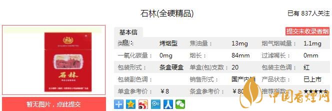 石林全硬精品是石林品牌系列的高品位卷煙。該產(chǎn)品繼承和發(fā)揚了“石林”牌系列卷煙的有毒,自然優(yōu)雅,煙氣飽滿綿長,煙氣醇和的,口感和余味更加干凈舒適,香氣越來越細膩柔和。只可惜目前這款石林全硬精品已經(jīng)停止生產(chǎn),市面上已經(jīng)很少見了。