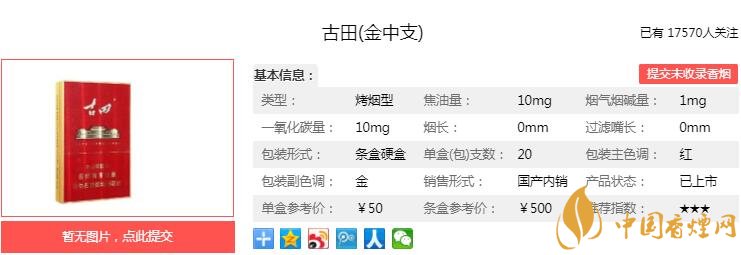 一、古田金中支香煙價格