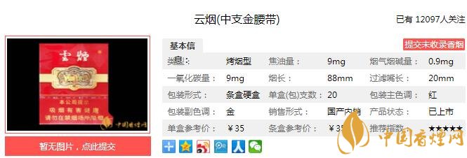 以上便是由香煙網(wǎng)小編為大家介紹的關(guān)于云煙中支金腰帶價(jià)格 云煙中支金腰帶參數(shù)及口感分析的相關(guān)信息,想要了解更多有關(guān)內(nèi)容請(qǐng)點(diǎn)擊:利群新版多少錢(qián)一包 利群新版口感及價(jià)格介紹
