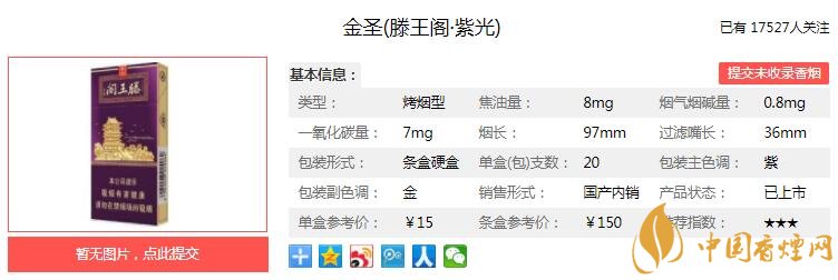 以上便是由香煙網(wǎng)小編為大家介紹的關(guān)于金圣滕王閣紫光好抽嗎 金圣滕王閣紫光價格及口感分析的相關(guān)信息,想要了解更多有關(guān)內(nèi)容請點擊:白沙尚品藍(lán)多少錢一包 白沙尚品藍(lán)口感及參數(shù)介紹