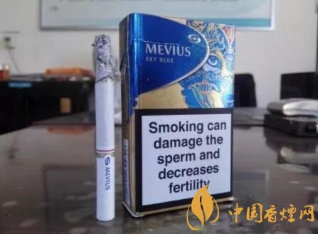 我們首先來看一看煙盒的整體包裝設(shè)計(jì)情況。柔七的LOGO自不必多言,它的下方印有“SKY BLUE”字樣,意指“天藍(lán)”或者“藍(lán)天”款式。歐盟樣式的黑色粗警示框的上方,同時(shí)印有“2018 LIMITED EDITON”字樣,意為“2018限量款”。