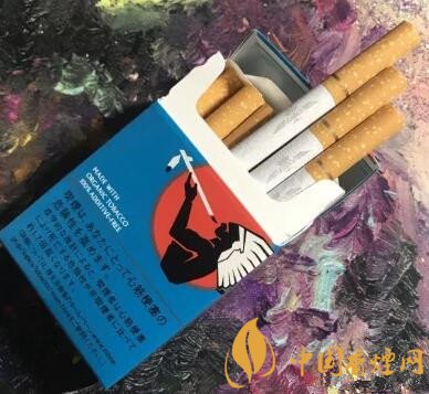 煙盒主色調藍色加上印第安人的logo。
