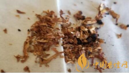 煙絲油潤亮澤,以明黃煙絲居多,切寬1mm,揉捻得比較細(xì)軟。用料上乘考究。
