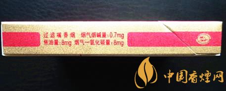 類型 :烤煙型 焦油量 :8mg 煙氣煙堿量 :0.7mg 一氧化碳量 :8mg