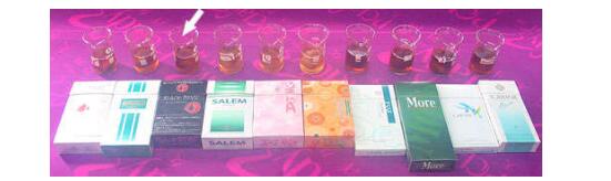 在主流煙氣的氣相物中,最主要的有氮、氧、二氧化碳、一氧化碳和氫。這5種氣體約占總氣相物的90%,占總煙氣釋放量的85%左右。除此之外,還有一些其它化學(xué)成分。其中最主要的有害成分就是煙堿(尼古丁),焦油,一氧化碳。接下來就讓我們對(duì)這幾種有害物質(zhì)進(jìn)行評(píng)測。