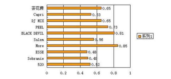 根據(jù)實(shí)驗(yàn)所得數(shù)據(jù),按上式進(jìn)行計(jì)算,得的評(píng)測結(jié)果為:BLACK DEVIL 黑魔鬼女士香煙煙堿含量=0.81mg.歐盟規(guī)定出售的香煙,煙堿含量不能高于1毫克