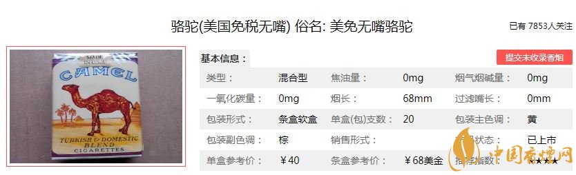 煙民們應(yīng)該都知道,無嘴香煙對我們的身體傷害很大,從80年代后期,過濾嘴香煙出現(xiàn)后,無嘴香煙便慢慢被淘汰了,但是對于一些老煙民來說,無嘴香煙的口感是經(jīng)典,始終無法超越。今天小編就為大家介紹一款無嘴香煙——無嘴駱駝(美國免稅)。下面讓我們一起去看看這款無嘴駱駝的價格以及抽過的煙民的品吸點(diǎn)評。