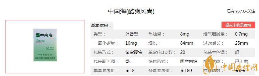 中南??崴L(fēng)尚是混合型香煙中的極品,自然清新的茶香,勁涼的薄荷味非常突出,很多煙客對(duì)它特別的青睞。