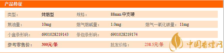 | 煙長:84mm | 過濾嘴長:25mm | 包裝形式:條盒硬盒 | 單盒(包)支數(shù):20 |