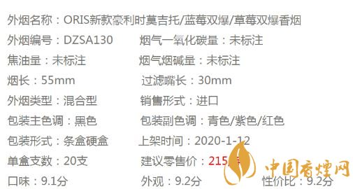 ORIS豪利時莫吉托爆珠香煙參數(shù)