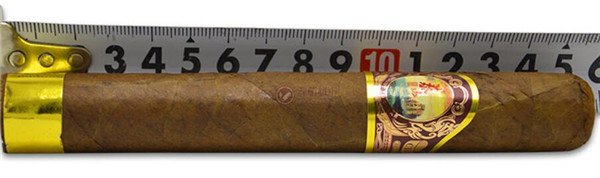 茄體結(jié)構(gòu)精糧,呈現(xiàn)為深褐色,衣帽下端配有金色的印花雙標(biāo),茄體底端處配有純金色的標(biāo)雙,雙重標(biāo)環(huán)奠定了其尊貴的品質(zhì),使它看起來(lái)華麗無(wú)比。