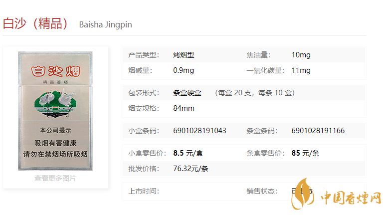 精品白沙,烤煙型,中高檔卷煙,中國(guó)醇和派的領(lǐng)飛者。1995年面市以來(lái),產(chǎn)品深得消費(fèi)者的喜愛(ài),銷量增長(zhǎng)迅猛,亦是全國(guó)中高檔煙市場(chǎng)的主要牌號(hào)之一。精品白沙,外包裝延用“白沙”牌卷煙外包裝圖案,采用高檔銀卡紙,經(jīng)壓凸套印來(lái)突出商標(biāo)的主體圖案及品牌形象,格調(diào)高雅、新穎,裝璜精美,成為企業(yè)效益增長(zhǎng)的主要來(lái)源。吸味醇和、香氣濃郁、清雅豐滿、余味純凈、舒適。