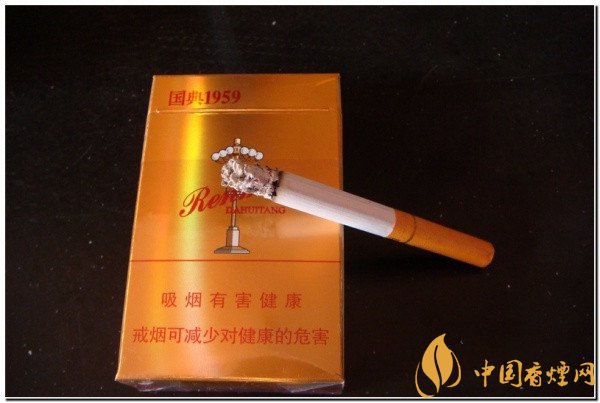 打開(kāi)煙盒,首先看到的是錫紙上國(guó)典1959字樣。靠近一聞,挺清爽的煙草香,帶點(diǎn)涼清酸爽的氣味。手捏煙支,感覺(jué)充實(shí),煙絲的色澤鮮艷。過(guò)濾嘴是金黃色的,上有““人民大會(huì)堂”的字樣。過(guò)濾嘴裙帶處有一道白金色的金箍,金箍下是“國(guó)典1959”字體。