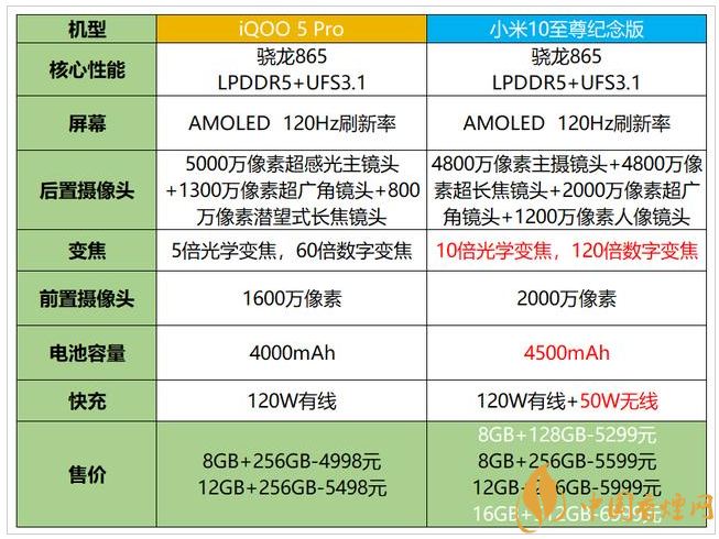 iQOO5 Pro和小米10至尊紀(jì)念版對比-參數(shù)對比測評