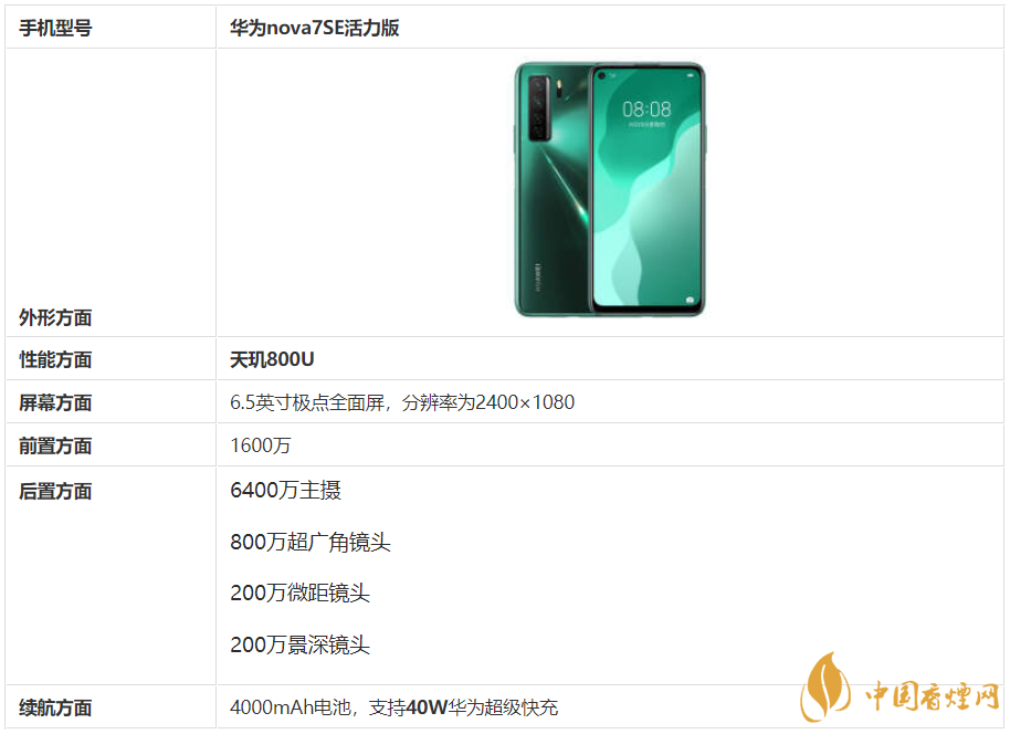 以上就是香煙網(wǎng)小編為大家介紹的華為nova7SE參數(shù)配置情況的相關(guān)內(nèi)容了,希望對(duì)大家在選擇時(shí)有所幫助。了解更多實(shí)用手機(jī)相關(guān)咨詢,請(qǐng)關(guān)注香煙網(wǎng)。