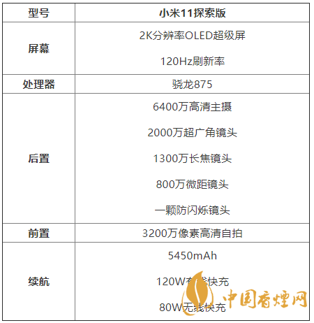 以上就是香煙網(wǎng)小編為大家介紹的小米11探索版參數(shù)配置詳情的相關(guān)內(nèi)容了,希望對大家在選擇時有所幫助。了解更多實用手機相關(guān)咨詢,請關(guān)注香煙網(wǎng)。