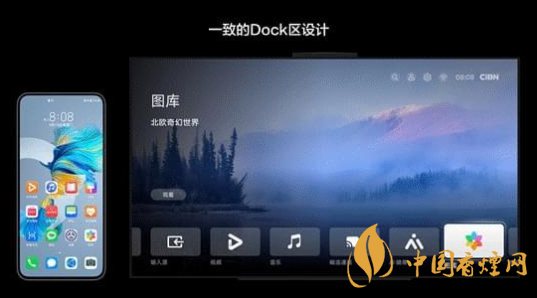 這是華為第一代智慧屏上市時界面的樣子,這是非常傳統(tǒng)的做法。但是用戶在找內(nèi)容的過程中,有點信息過載,所以華為有了新的思考,那像手機界面中常用的dock,是不是也可以被用在智慧屏上,作為功能的入口,不僅可以承載這些內(nèi)容,比如電視直播、視頻等,也可以在未來面向更多的功能不斷拓展,提供一個比較沉浸的界面。