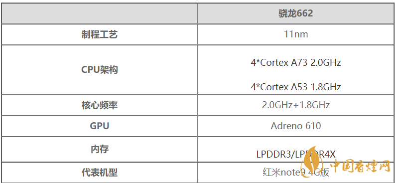 驍龍662沿用11nm制程工藝,采用4*Cortex A73 2.0GHz+4*Cortex A53 1.8GHz八核設計,并且同樣維持Kryo 260架構。
