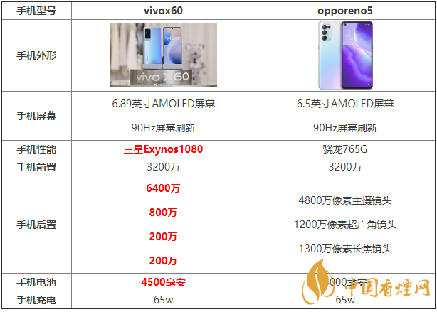 vivox60和opporeno5參數(shù)配置對(duì)比 哪款手機(jī)更好