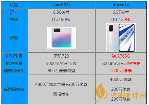 vivoY52s和iqooz1哪款手機更好?vivoY52s一款性能均衡的新手機,那么這款新手機和iqooz1x相比較有著什么樣子的差別呢?又是哪一款手機有著更加高的性能呢?現(xiàn)在就有香煙網(wǎng)小編來為大家介紹一下vivoY52s和iqooz1參數(shù)對比,感興趣的朋友一起來看看吧。