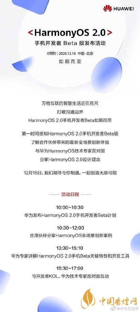 華為王成錄 表示:“HarmonyOS正沿著我們?cè)贖DC上公布的路標(biāo)快速成長(zhǎng),轉(zhuǎn)眼又迎來(lái)新的里程碑。12月16日我將在北京發(fā)布HarmonyOS 2.0手機(jī)開發(fā)者Beta版本,歡迎合作伙伴、開發(fā)者朋友們來(lái)一起探索,一起創(chuàng)造。”除此之外,他還在微博上發(fā)出了本次活動(dòng)的預(yù)熱海報(bào)以及活動(dòng)流程。