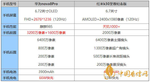 華為nova8pro可是一款即將上市的新手機(jī),很多小伙伴們都是想要知道這款手機(jī)和之前深受用戶歡迎的紅米k30至尊紀(jì)念版哪個(gè)好,哪個(gè)更值得入手?下面香煙網(wǎng)小編將對(duì)華為nova8pro和紅米k30至尊紀(jì)念版參數(shù)對(duì)比進(jìn)行介紹,感興趣的朋友一起來看看吧!