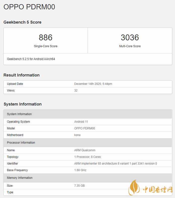 Reno5 Pro + 已出現(xiàn)在 Geekbench 的測(cè)試平臺(tái)上。在 Geekbench 5 上,Reno5 Pro + 在 Geekbench 5 的單核和多核測(cè)試中,分別獲得了 886 分和 3036 分。