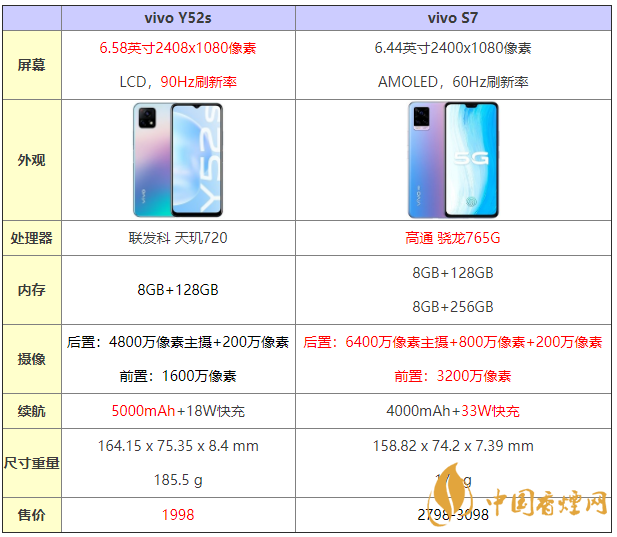 vivoy52s和vivos7手機哪個更好?vivoy52s和vivos7對比,有哪些區(qū)別和配置差距,哪款手機更值得入手?接下來香煙網(wǎng)小編就為大家?guī)砹藇ivoy52s和s7全面參數(shù)配置對比,一起看看哪款更值得入手性價比更高吧!