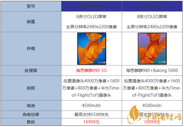 華為Mate Xs:搭載海思麒麟990 5G處理器,華為MateXs處理器升級(jí)到麒麟990 5GSoC,CPU、GPU、NPU方面的性能和上一代相比分別提升23%、39%、460%