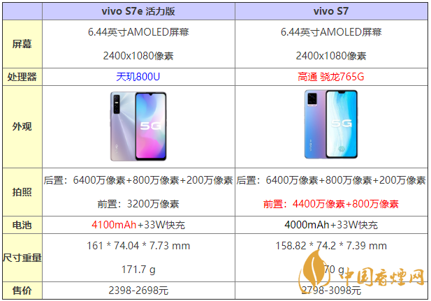 vivoS7e活力版和vivoS7參數(shù)對(duì)比 有什么區(qū)別