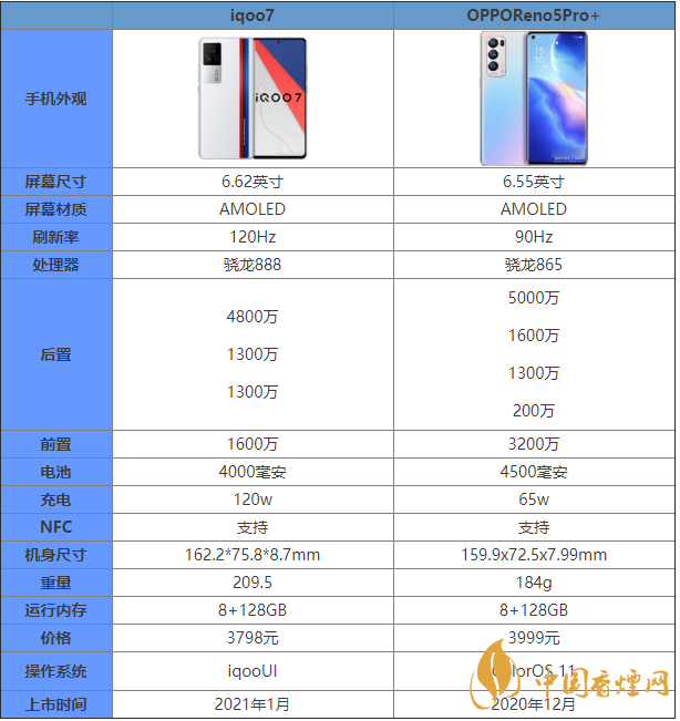 通過上面的介紹,相信大家對iqoo7和OPPOReno5Pro+有哪些區(qū)別-參數(shù)對比詳情都有了一定了解了,希望對大家在選擇時有所幫助。了解更多實用手機相關咨詢,請關注香煙網(wǎng)。