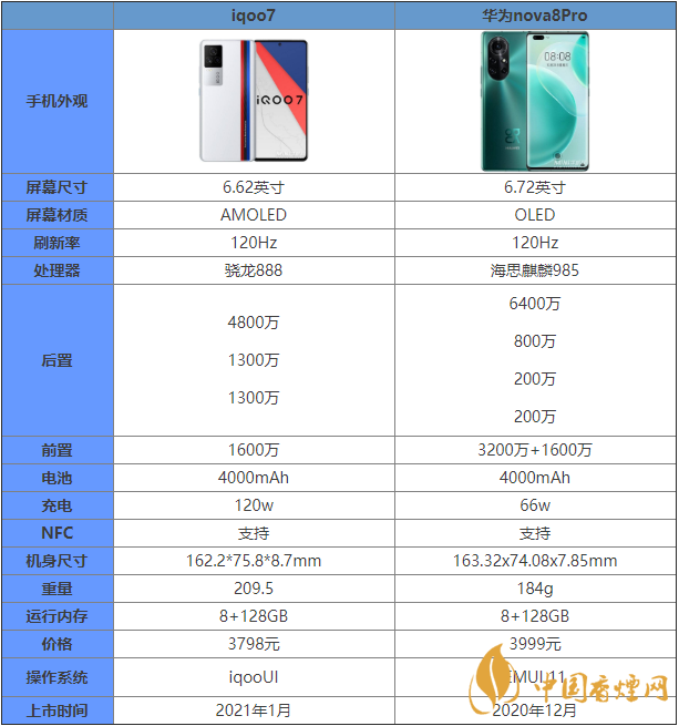 近期,迎來iqoo7新機(jī)發(fā)布,那么對比華為nova8Pro這款手機(jī)有什么區(qū)別?哪款手機(jī)更好?哪款手機(jī)更值得入手?接下來香煙網(wǎng)小編為大家?guī)韎qoo7和華為nova8Pro參數(shù)對比評測,感興趣的朋友一起來看看吧!