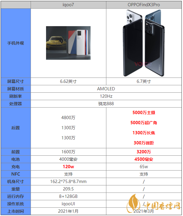 OPPOFindX3Pro和iqoo7都是搭載的驍龍888處理器,那么這兩款手機的區(qū)別是什么?哪款手機的性價比更高?哪款手機更值得入手?下面香煙網(wǎng)小編為大家?guī)鞳PPOFindX3Pro和iqoo7參數(shù)對比,快來看看吧。