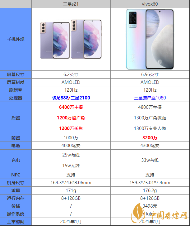 三星s21和vivox60區(qū)別對比 三星s21和vivox60哪款手機更好