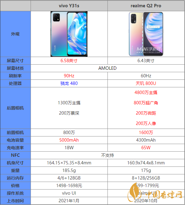 vivoY31s和realmeQ2Pro哪款手機(jī)更好?這兩款手機(jī)都在千元機(jī)的范疇內(nèi),那么這款兩款手機(jī)在配置上有什么區(qū)別,哪個(gè)更值得入手?接下來(lái)香煙網(wǎng)小編就為大家?guī)?lái)了詳細(xì)的參數(shù)對(duì)比,感興趣的朋友一起看看吧!